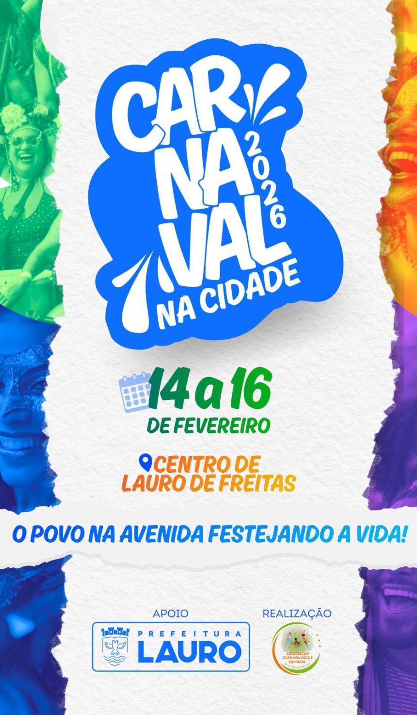 Com uma programação voltada para a família, o Carnaval na Cidade 2026, realizado pela Associação Carnavalesca e Cultural, com o apoio da Prefeitura de Lauro de Freitas, vai animar as ruas do Centro da cidade nos dias 14, 15 e 16 de fevereiro, com a apresentação de blocos tradicionais, grupos culturais e trios elétricos que prometem agitar os foliões.
