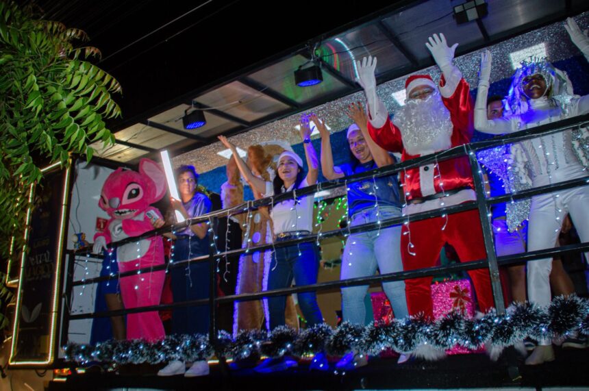 A ação, que contou com a presença especial da prefeita Débora Regis, marcou a noite de domingo com um cenário de encanto. Com Papai Noel e seus ajudantes a bordo, o trio musical percorreu as comunidades de Vila Praiana, Chafariz, Vila Mar, Lagoa dos Patos, Ipitanga, Lagoa da Base, Vilas do Atlântico, Miragem e Buraquinho, deixando um rastro de sorrisos e boas memórias pelo caminho.
