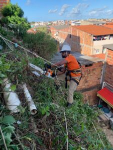 A Prefeitura de Lauro de Freitas, por meio da Defesa Civil, realizou na última terça-feira (30/9) um trabalho de limpeza preventiva em uma encosta localizada no Caminho 46, no Parque Santa Rita, em Itinga. A ação teve como objetivo reduzir riscos e garantir mais segurança à população durante o período chuvoso.