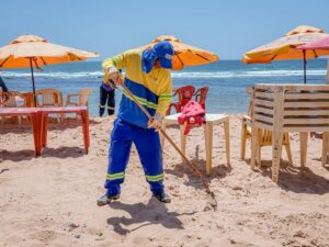 O serviço realizado pelos profissionais inclui a remoção de resíduos ao longo da areia, a coleta do lixo descartado nas lixeiras distribuídas por toda a orla, além da limpeza manual executada pelos agentes. Para ampliar a eficiência das ações, a gestão também disponibiliza quadriciclos, que auxiliam no deslocamento das equipes e no recolhimento dos resíduos.
