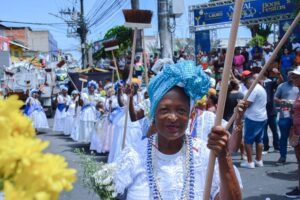 Em uma comitiva conduzida pelas baianas, ao som do berimbau e dos atabaques, moradores de Lauro de Freitas acompanharam o cortejo da 40ª edição da tradicional Lavagem do Largo do Caranguejo, realizada neste domingo (14/12). O evento integrou a programação festiva que movimentou o bairro de Itinga ao longo do fim de semana.
