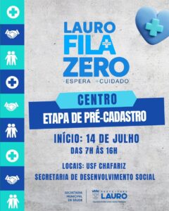 A Prefeitura de Lauro de Freitas inicia, nesta segunda-feira (14/7), o pré-cadastro para o Programa Lauro Fila Zero. A terceira edição acontecerá no Centro, e moradores que possuem exames ou procedimentos pendentes na regulação devem procurar um dos pontos de atendimento para realizar esta etapa, de segunda a sexta-feira, das 7h às 16h.