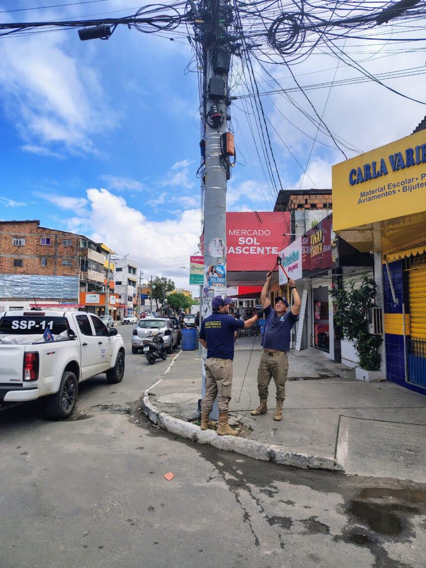 Neste domingo (31/8), a Prefeitura de Lauro de Freitas, por meio da Secretaria Municipal de Segurança, Defesa Civil e Ordem Pública (SSPLF), deu continuidade à Operação Visão Limpa, com a remoção de placas e cartazes instalados irregularmente em áreas públicas do município. Cerca de 300 placas foram recolhidas e serão descartadas. Desde o início da operação, mais de 10 quilômetros de fios inutilizados presos a postes já foram retirados das ruas.