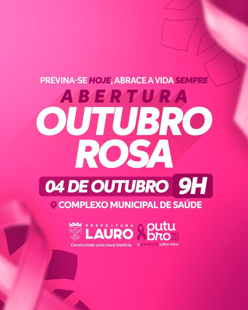 A Prefeitura de Lauro de Freitas, por meio de uma ação intersetorial entre as secretarias de governo, dará início neste sábado (4/10) a campanha Outubro Rosa, de prevenção ao câncer de mama e do colo do útero. O evento oficial acontece no Complexo Municipal de Saúde, no bairro de Itinga, a partir das 9h.