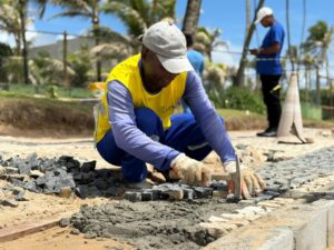 A Prefeitura de Lauro de Freitas segue com a manutenção e a substituição das pedras portuguesas do calçadão da orla, com o objetivo de oferecer um piso mais seguro, acessível e confortável para pedestres, corredores e demais frequentadores do local.