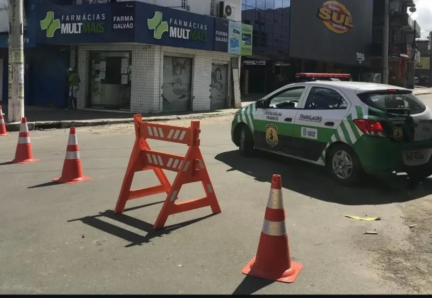 Na região da festa, a prefeitura fará a interdição do tráfego de veículos, das 15h às 3h, na Ladeira da Matriz, no fundo da Paróquia Santo Amaro de Ipitanga; Rua Romualdo de Brito, no trecho entre o Banco Bradesco e o Fórum; na Rua Manoel Silvestre Leite, entre a sede da Secretaria Municipal de Segurança, Defesa Civil e Ordem Pública (SSPLF) e os Correios; na Rua Edivaldo da Silva, próximo à Junta Militar; também na 2ª Travessa Romualdo de Brito; e na ponte sobre o Rio Ipitanga, que dá acesso à Praça João Thiago dos Santos.