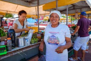 Para dona Luzenilda Peixoto, de 63 anos, conhecida como Luza do Cacau, por cultivar o plantio da fruta, a feira vai muito além de abrir portas para movimentar o comércio. É também, um espaço de troca de conhecimento entre os agricultores e a comunidade. “Sou nascida e criada na roça e nunca soube dos benefícios dos alimentos. Aqui na feira eu aprendi a dar mais valor aos alimentos, através do acompanhamento com a nutricionista que sempre vem a feira nos orientar”, declarou a agricultora.