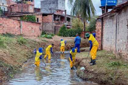 Limpeza preventiva de canais evita alagamentos durante frente fria em Lauro de Freitas
