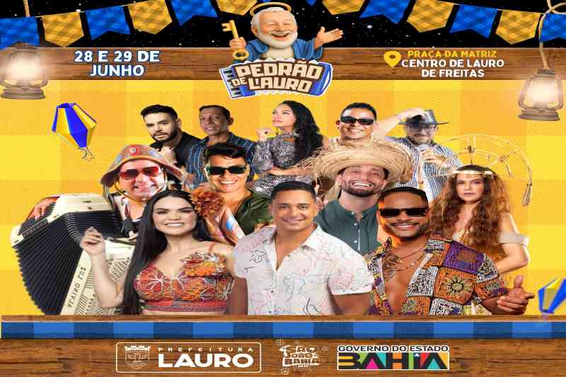 Nos dias 28 e 29 de junho, a Praça João Tiago dos Santos, conhecida como Matriz, no Centro de Lauro de Freitas, vai se tornar o palco da primeira edição do Pedrão de Lauro, com uma diversidade cultural e apresentação de artistas locais, regionais e nacionais. A festividade, em homenagem a São Pedro, vai contar com apresentações de Trio Nordestino, Colher de Pau, Tony Salles, Jeanne Lima, Laços do Forró, Amor.Com, Xanddy Harmonia, Dan Valente, entre outros.
